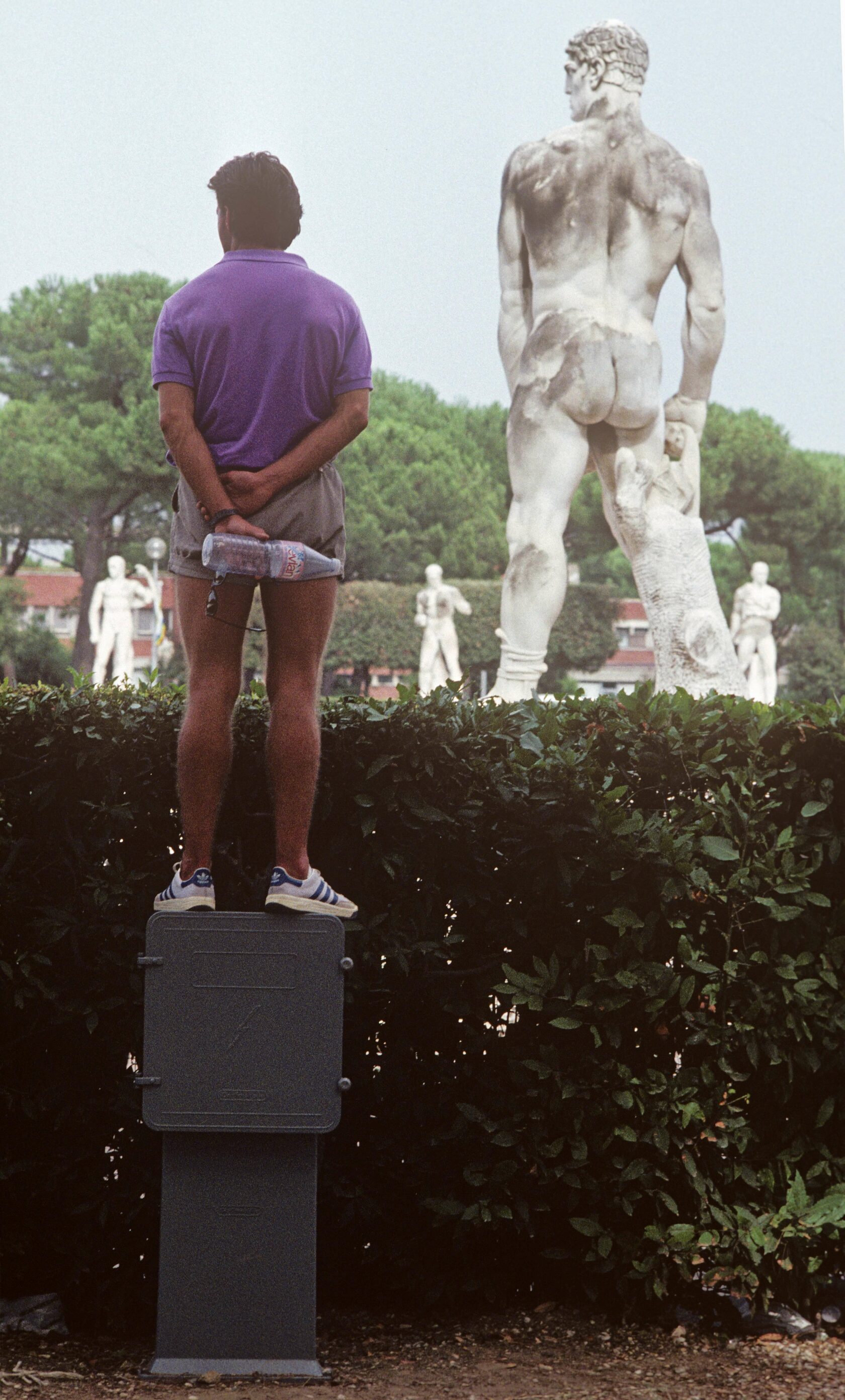 Люди отмывают в луже этикетки с бутылок, чтобы сдать их в пункт приема стеклотары.